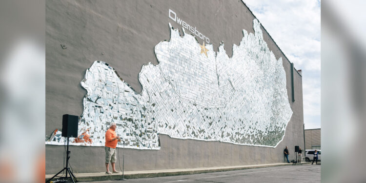He’s speaking, of course, about the mirror mural in the shape of Kentucky that greets travelers as they arrive to and depart from Owensboro across the Glover Cary Bridge.