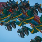 Continuing Holiday World’s tradition of sending roller coasters through its thickly wooded and hilly terrain, Thunderbird at first soars and loops high in the air and then hugs the ground, surprising riders with rapid-fire “near misses” such as keyholes, themed elements, other rides, trees, and even the ground.